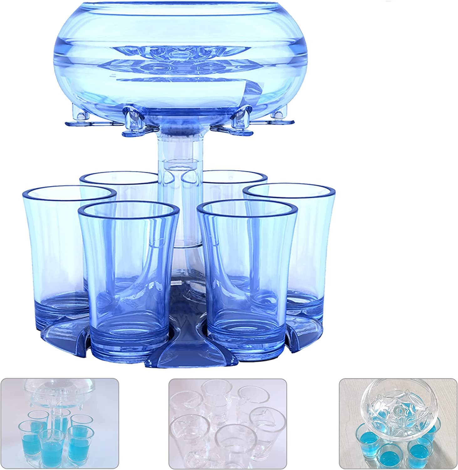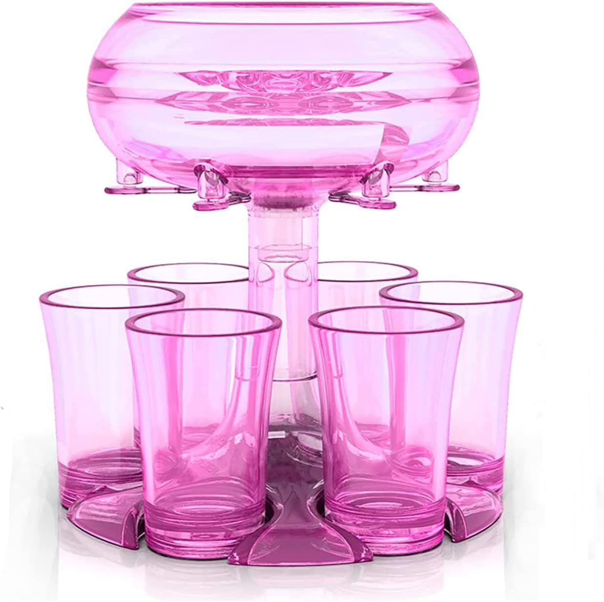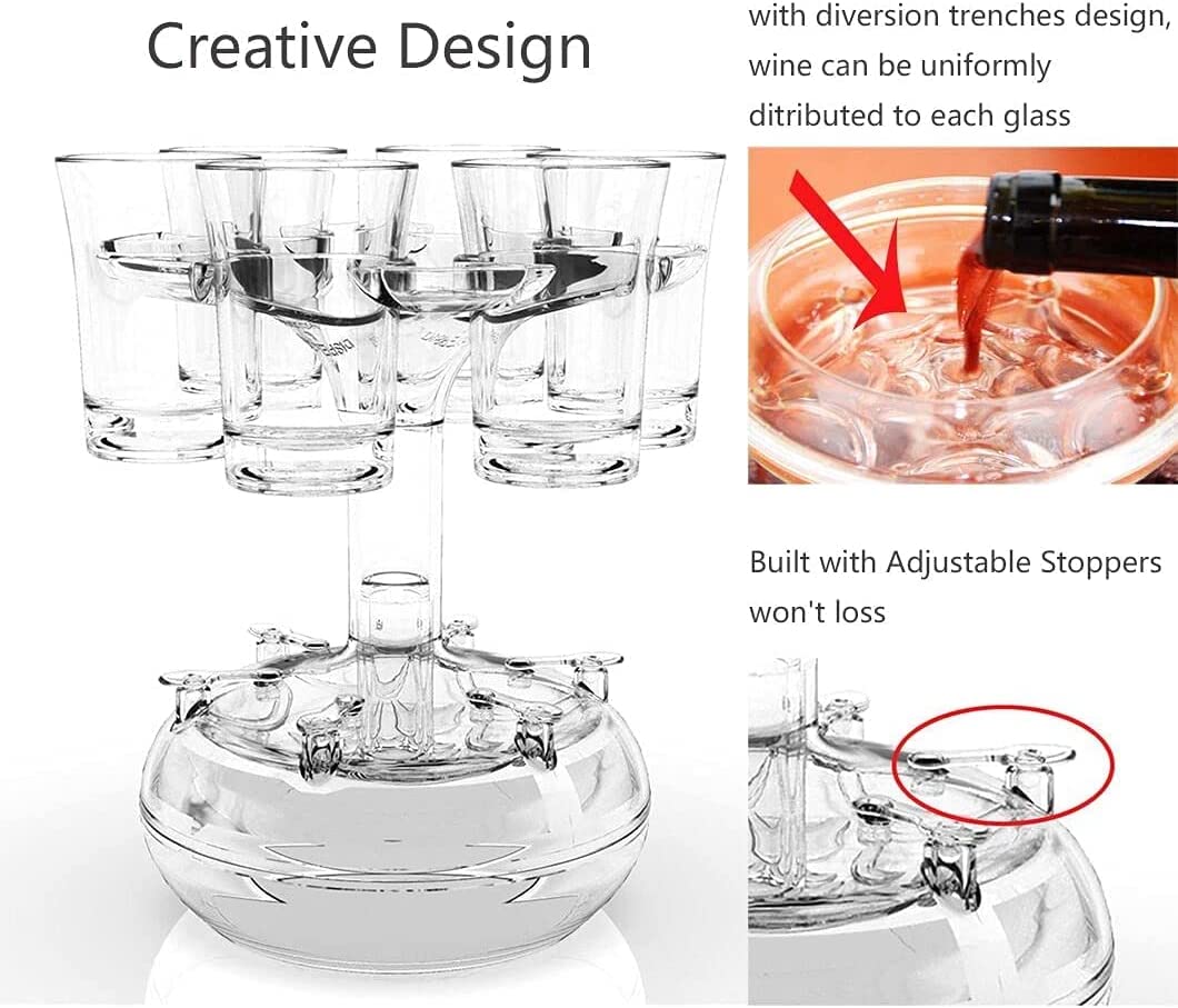 🍷🍷【6 Clear Plexiglass dispenser Set】Party shot glass dispenser is a great way to pour wine.This drink dispenser is made of 100% non-toxic food grade acrylic material.Set:1pcs Peg-Top+1pcs Umbrella+1pcs Steel Ball+1pcs Siphon Cup+1pcs Dolphin+ 1pcs Holder+6 Shot Wine glass.The clear acrylic dispenser use the siphon principle,it can evenly dispense drinks into 6 cups at the same time,and Built-in photoelectric module,which can be installed with batteries and emit light,add party atmosphere.