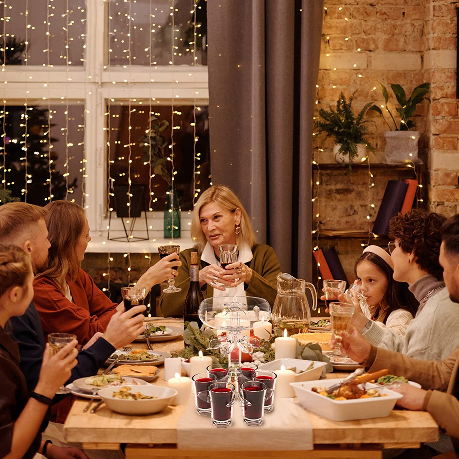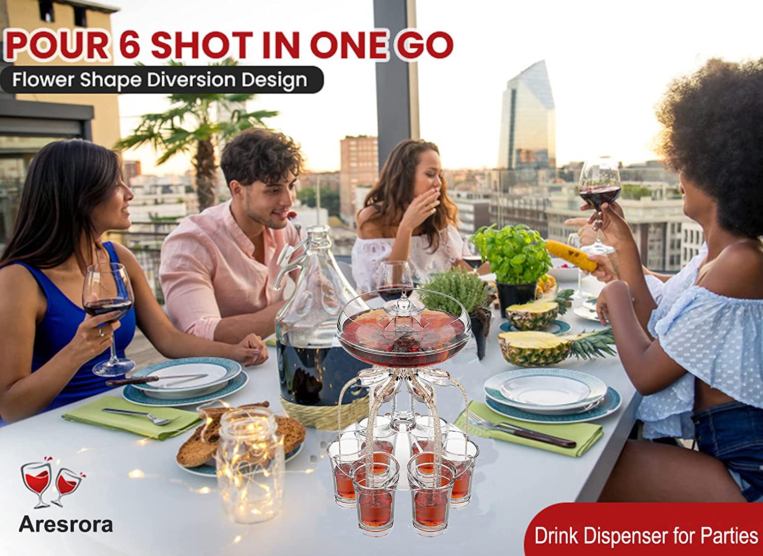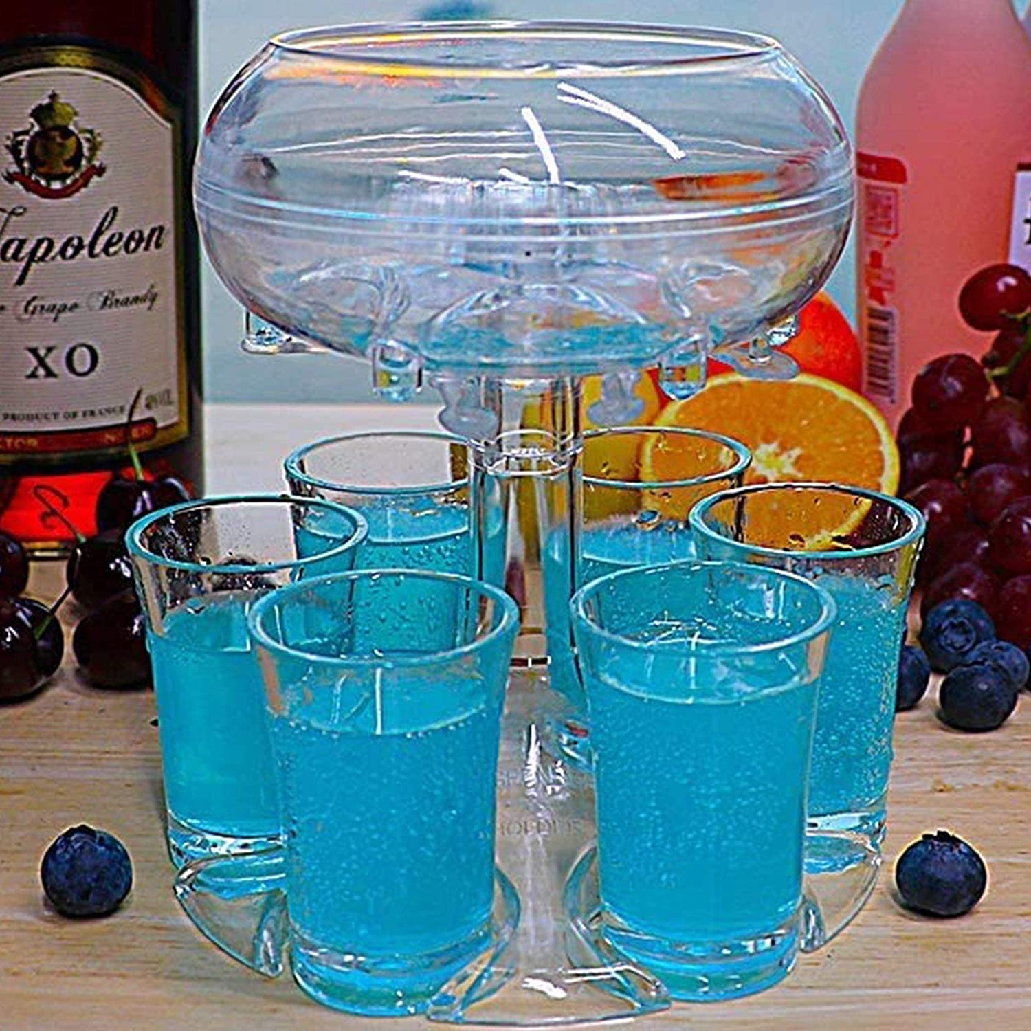 🍷🍷【6 Clear Plexiglass dispenser Set】Party shot glass dispenser is a great way to pour wine.This drink dispenser is made of 100% non-toxic food grade acrylic material.Set:1pcs Peg-Top+1pcs Umbrella+1pcs Steel Ball+1pcs Siphon Cup+1pcs Dolphin+ 1pcs Holder+6 Shot Wine glass.The clear acrylic dispenser use the siphon principle,it can evenly dispense drinks into 6 cups at the same time,and Built-in photoelectric module,which can be installed with batteries and emit light,add party atmosphere.
