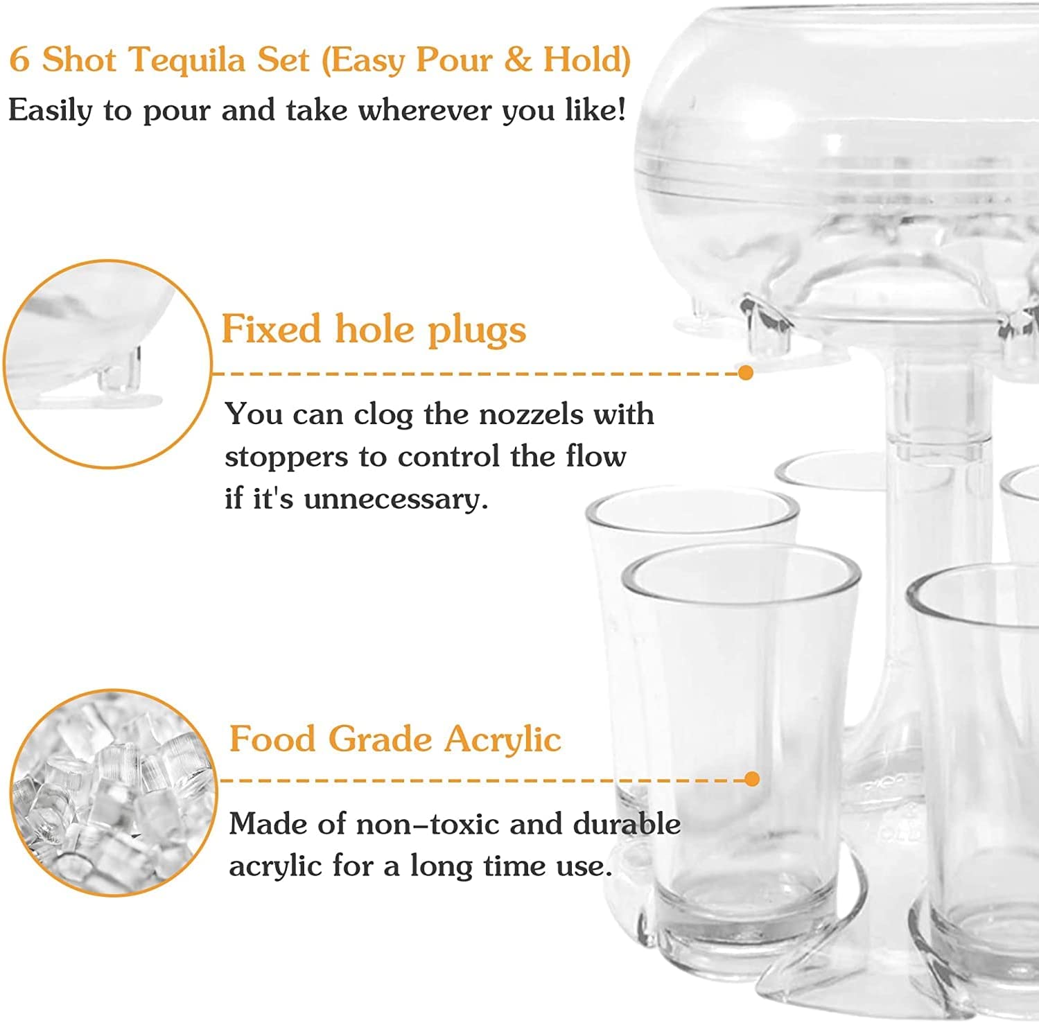 🍸🍸【Quick Pours 6 Shots At Once】The liquid must submerg the umbrella to ensure even distribution into each shot glass!ALL shot glasses dispenser are 3D Printed out of SAFE PLA Food Safety plastic,high infill to ensure sturdiness, U will like it !Love The Fancy Goblet Shape! This shape and the unbreakable Plexiglass make this cocktail dispenser versatile for fancy affairs and raucous nights.
