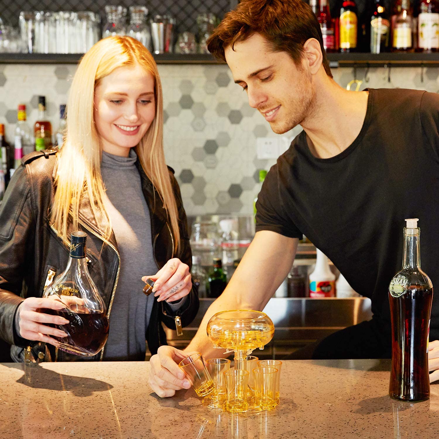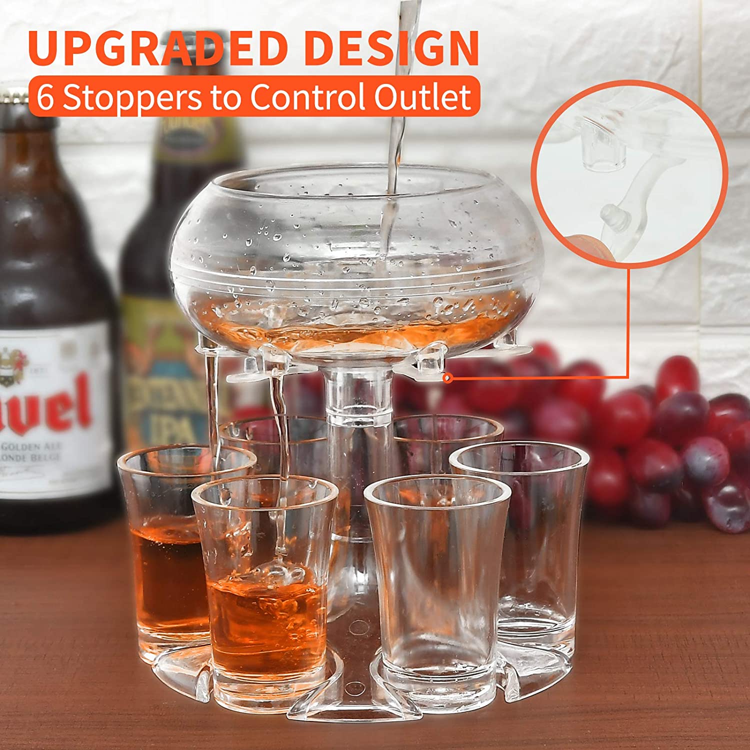 🍾🍾【Latest Design: using the principle of physical vacuum siphon】Ours is the Latest second generation wine dispenser.Unlike other drink dispensers,the siphon principle,which dispenses evenly and automatically without holding down the bung,The Drink Dispenser with six shots will allow you to easily fill up to six shot glasses at once with your favorite beer &beverage and then hold them up.This is great for holidays,weekend,parties bars,and home bars.
