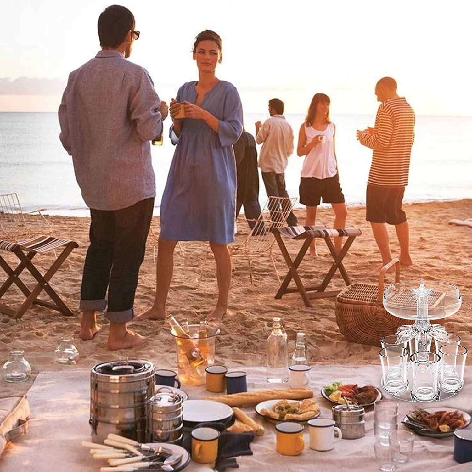 PACKAGE CONTENTS:1×Dispenser with 6 Shot Glass, Read more 6 shot glass dispenser in white 6 shot glass dispenser in yellow 6 shot glass dispenser in blue 6 shot glass dispenser in purple.
