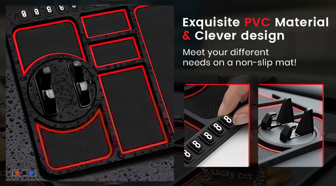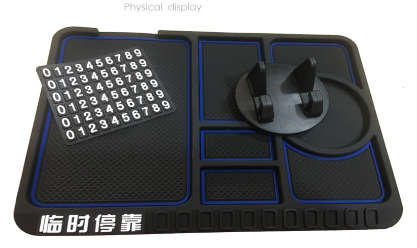 - MULTI-FUNCTION: This non slip car dashboard mobile holder organizer for keys, coins, cards, pens mat uses multi-function devices. Car phone holder / car storage pad / vehicle temporary parking mobile number pad/ mobile navigation bracket. This car accessories organizer comes with a temporary parking phone numbers sheet that can be attached to the corresponding number slot for temporary parking.