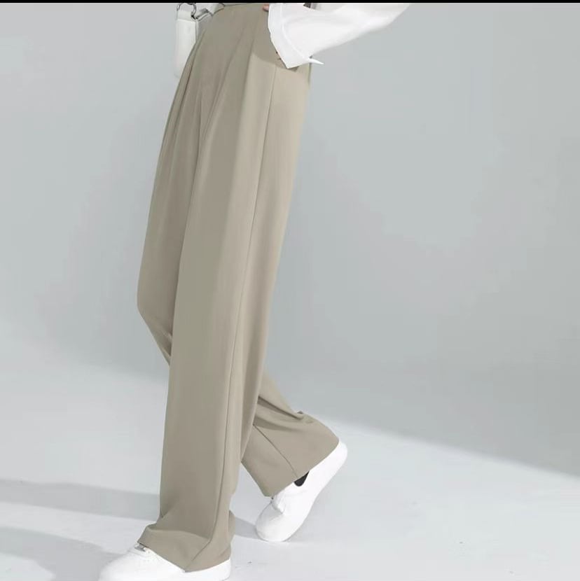 The pleated design well conceals fat on the leg, making your leg look slim and slender. Wide straight leg, lost fit Suitable for all women.