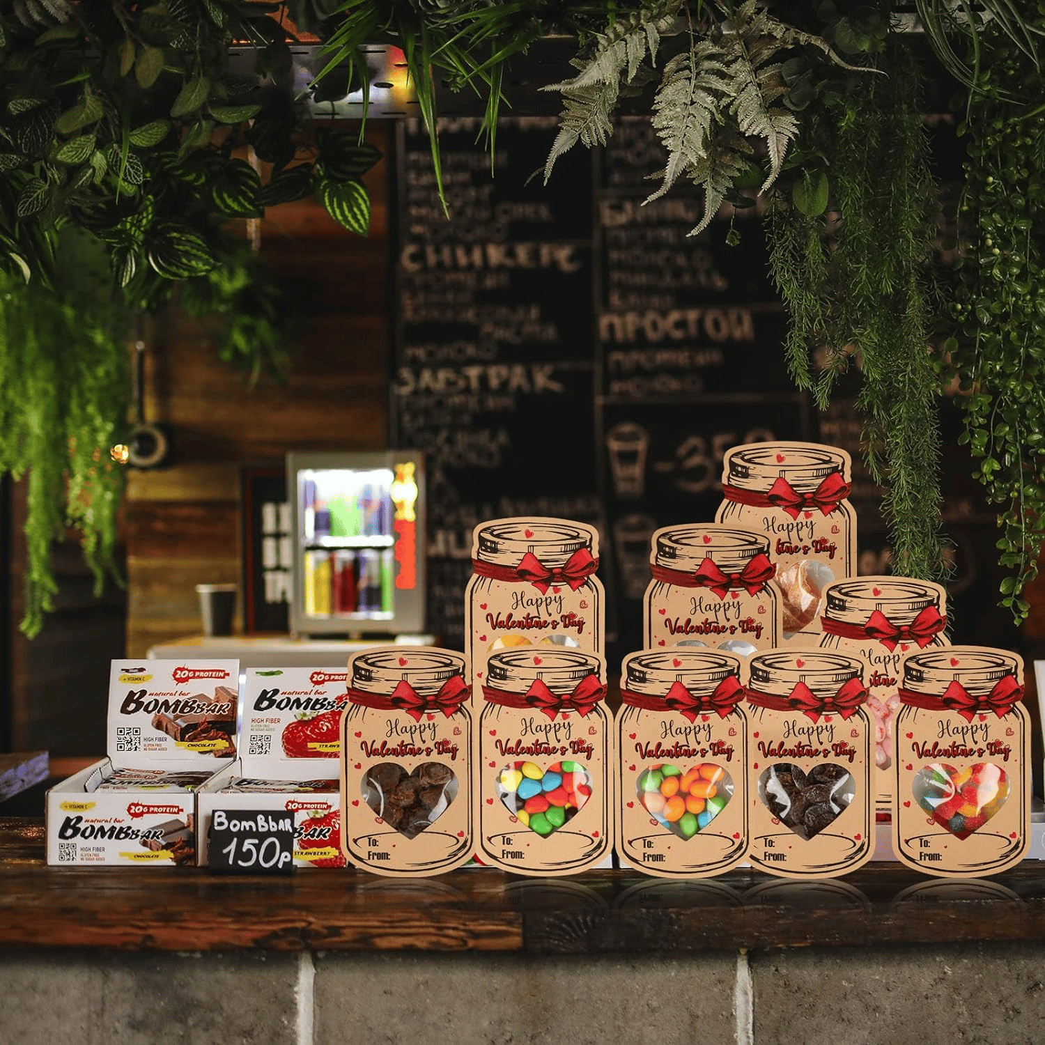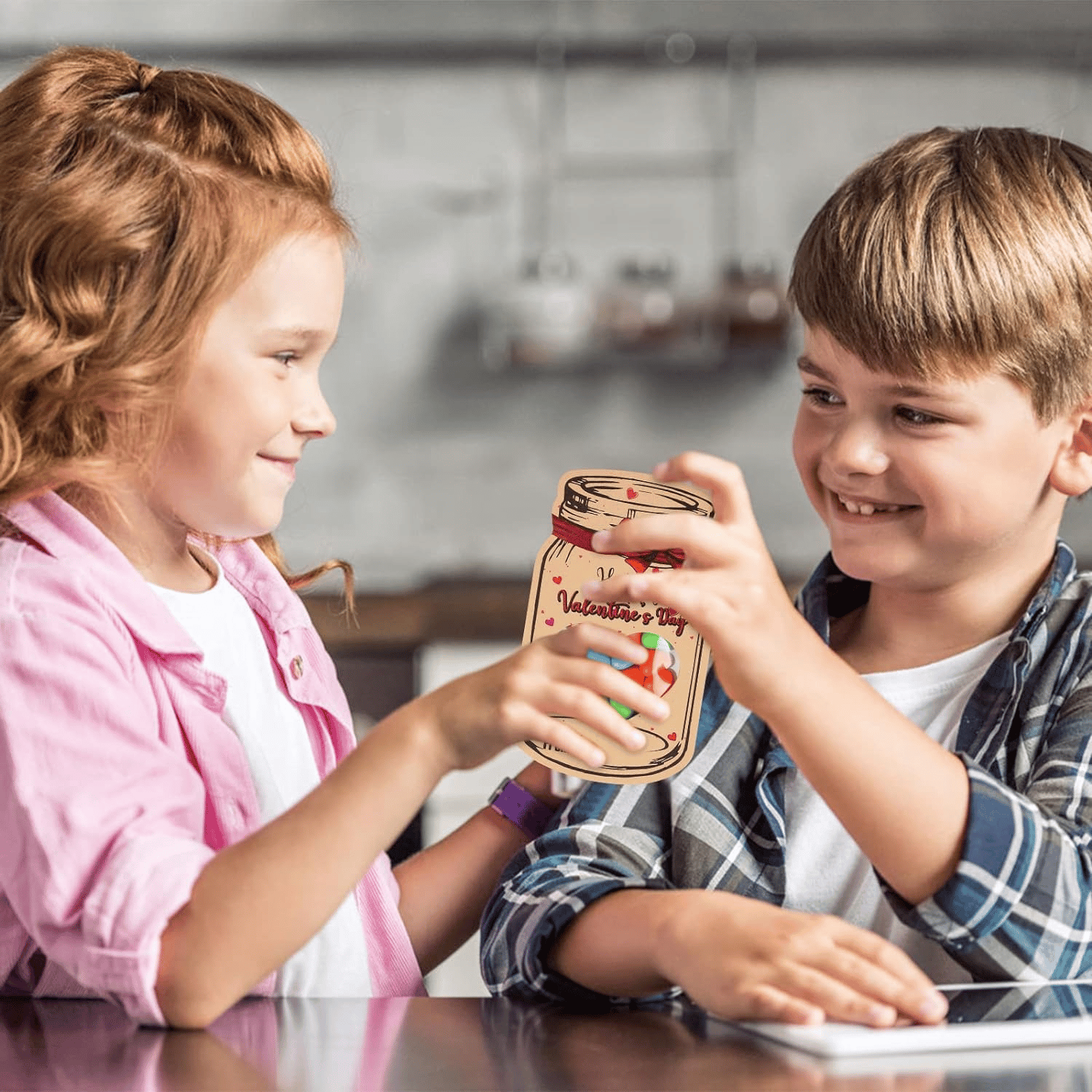 💌Personalized Candy Jar Valentine Cards - Set of 24, 5.9" x 3.5" Kid's Valentine Cards, Classroom Valentines Party Favor