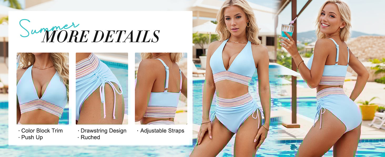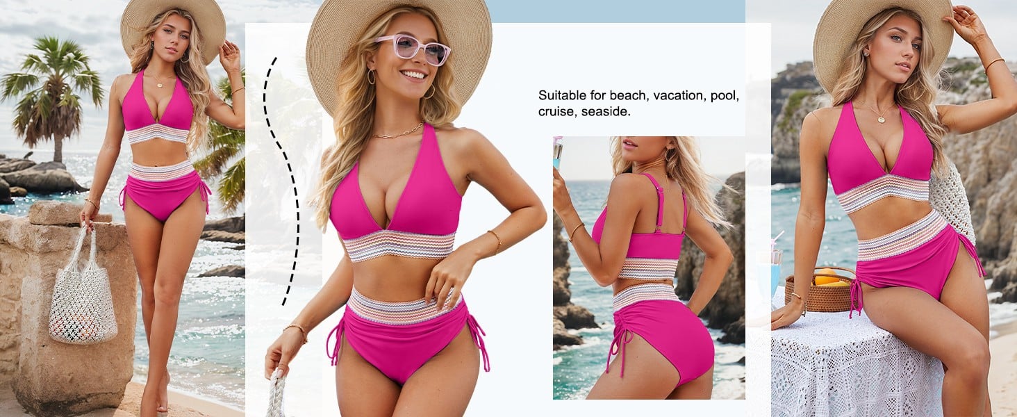 The high waisted bikini offers tummy control, ruched, drawstring, and wide waistband,creating a slimming effect and highlighting your waistline.With moderate coverage, you can feel confident and comfortable.