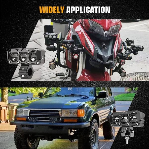 Installed as a pair, each light has a two-beam, three-lens design within durable aluminum housing. The extra hat look on the top makes the motorcycle more conspicuous. Built rugged and made to take the abuse of adventure riding, racing, dirt bikes, UTV's, ATV's, street bikes, or whatever you can throw at them. The dual-mounts design makes these lights easy to install and a perfect fit and look on your vehicles.