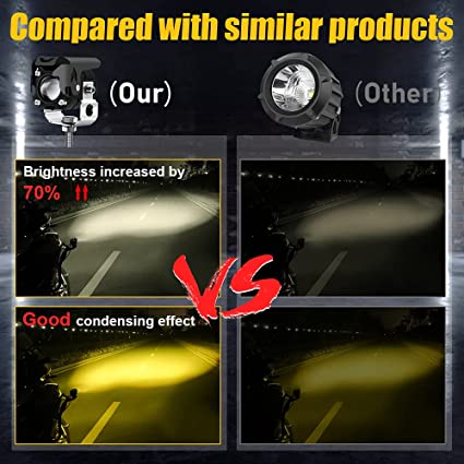 - Yellow Fog lights produce a 60° wide area coverage of light directly in close-range front of the motorcycle in low-visibility conditions, like foggy/rainy days.