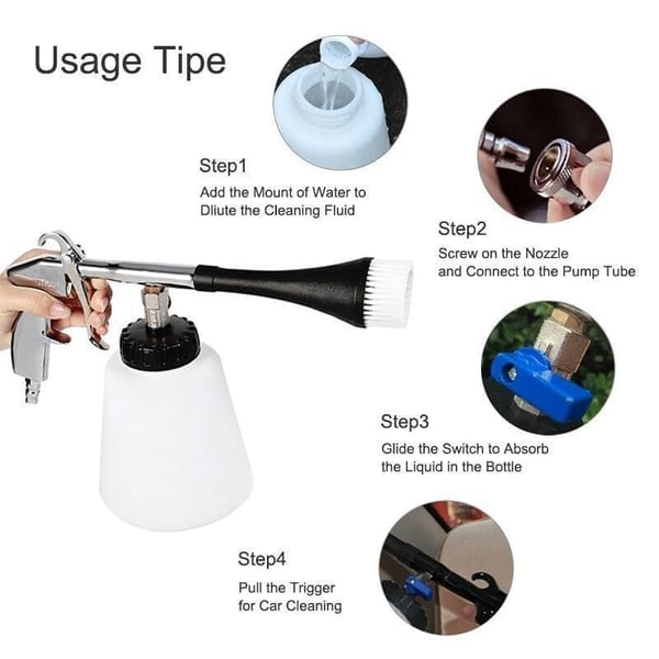 - Car Interior Cleaner designed with air pulse spray nozzle and high-pressure snow foam pot provides incredibly fast and effective cleaning on 99% surface.