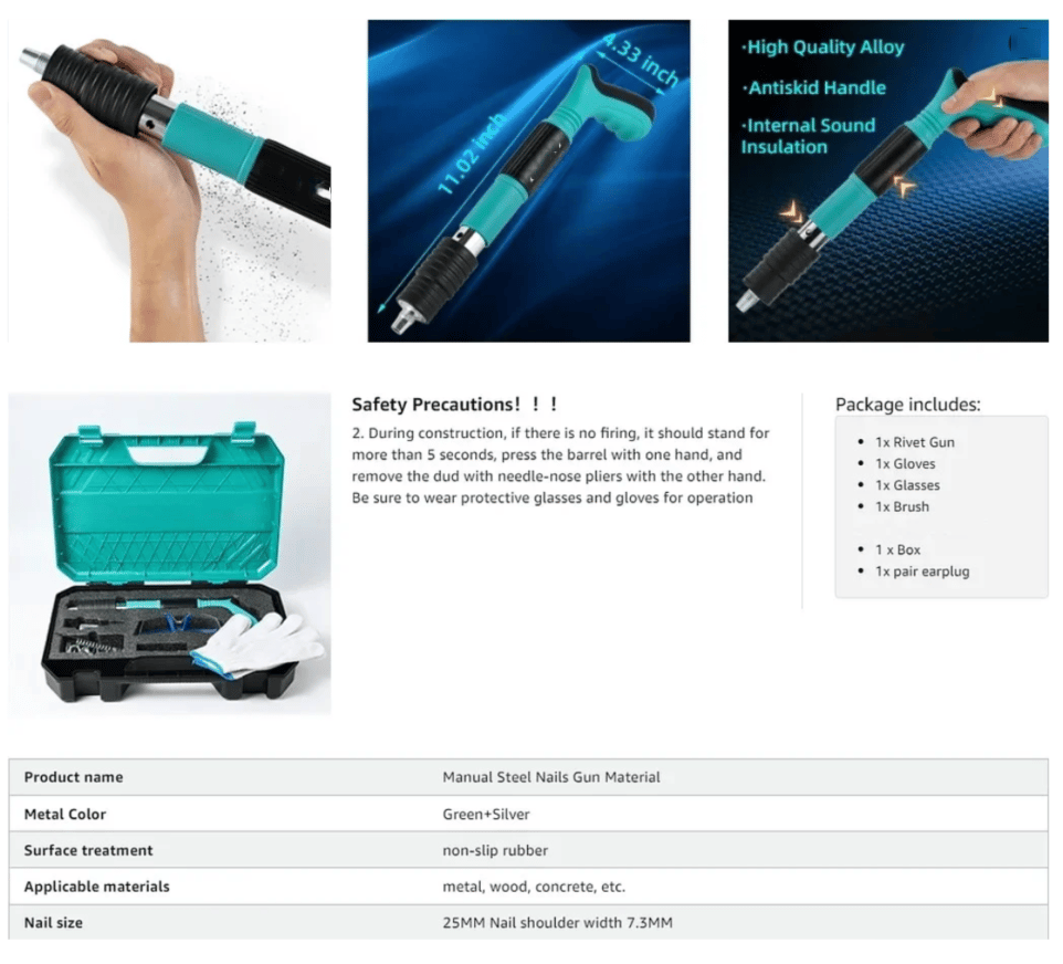 Only 0.1s for nailing can penetrate 3mm steel plate, nailing in place in one step.