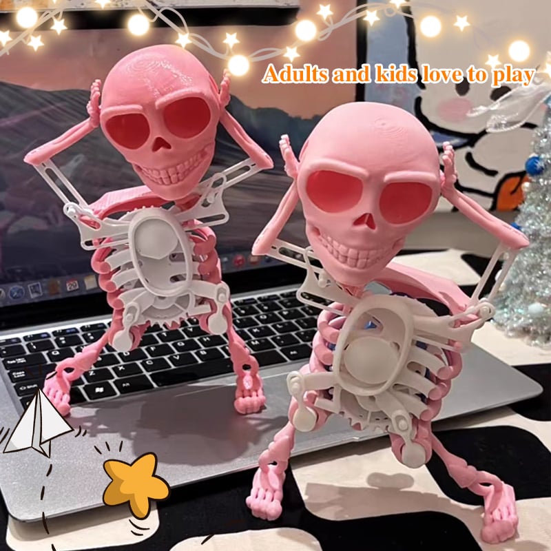 CLOCKWORK START: Just rotate the clockwork behind the skeleton, it will start dancing rhythmically with its flexible head and arms and waist, looks very funny and hilarious