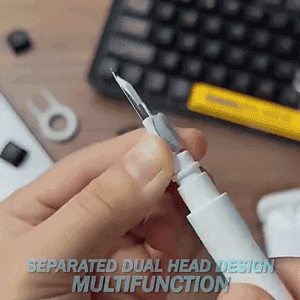 5-in-1 computer cleaning kit with Nylon Bristles, Flocking Sponge, High-density Brush, Metal Pen Tip and Keycap Puller, dual head is hidden design to meet a variety of cleaning needs.