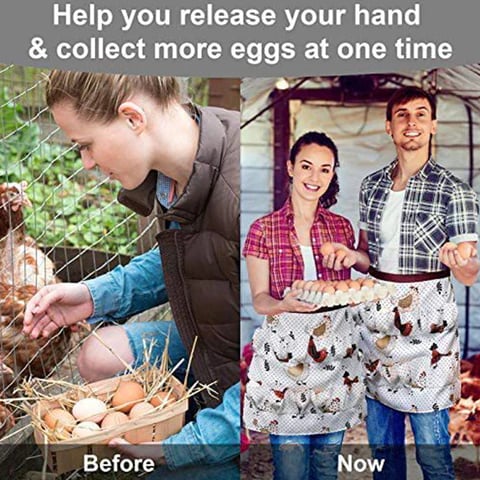 The beautiful and convenience alternative to the basket apron with 12 Specially stitched pockets, and the 50cm * 35cm(L*W )perfect pocket size can hold the eggs securely. Hands free and no more needing a chicken egg basket that breaks chicken and duck eggs in your coHelpful eggs apron.