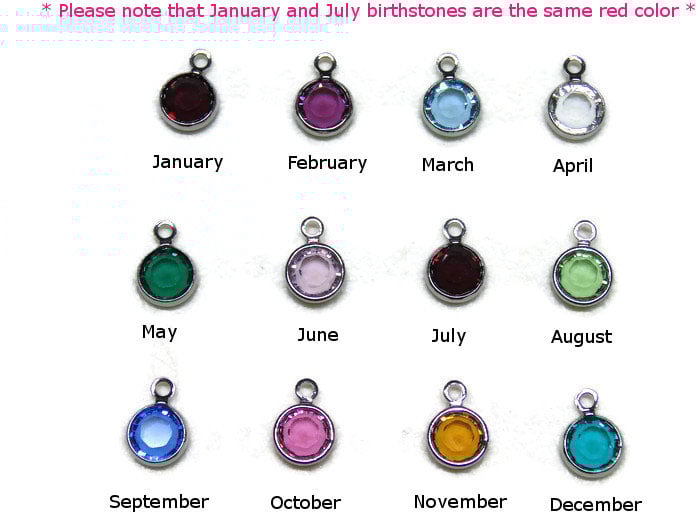 Each keychain is handcrafted with a birthday stone charm and initial.