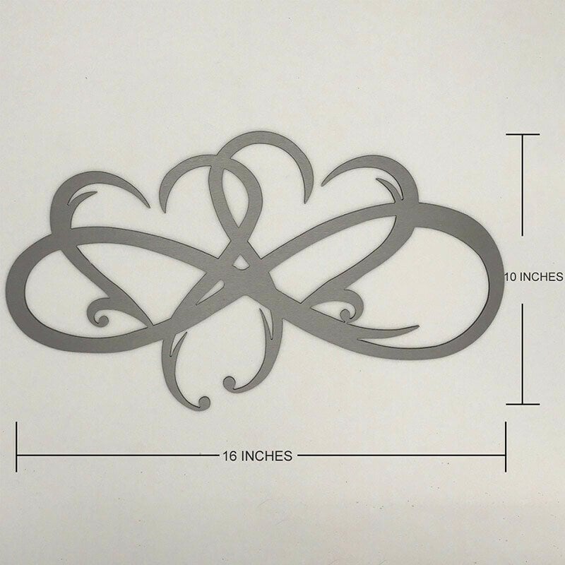 💞Infinity sign metal wall art. This unique and fun infinity symbol intertwined with a heart makes a great gift. Great love decor addition to a master bedroom or family gallery wall.