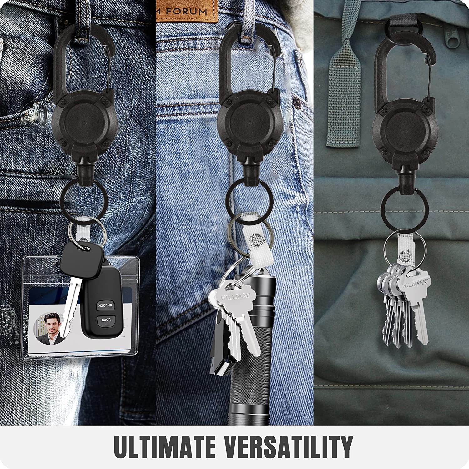 ✅ Sturdy aluminum carabiner with spring-loaded gate quick attach/detach to belt, pocket, strap or loop