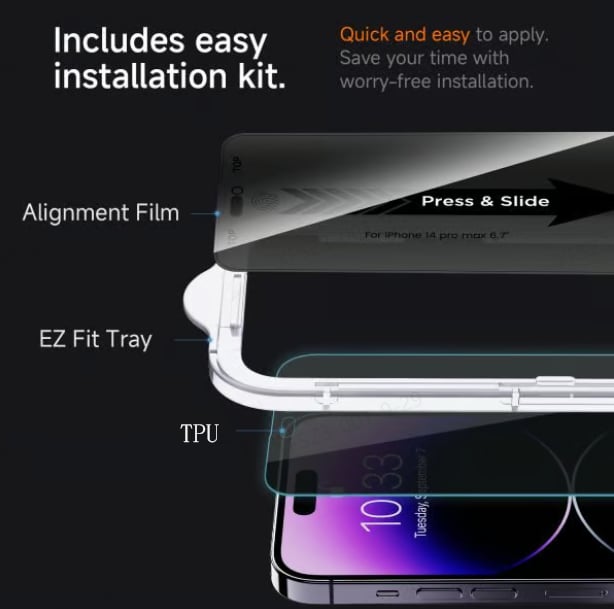 ⚫【Easy Installation】Say goodbye to the hassle! Our screen protector features automatic alignment, making installation a breeze. Just slide it on in seconds, and watch it flawlessly adhere to your phone. No more worries about alignment or bubbles—installation has never been easier. Friendly reminder: Please watch the installation video before starting.