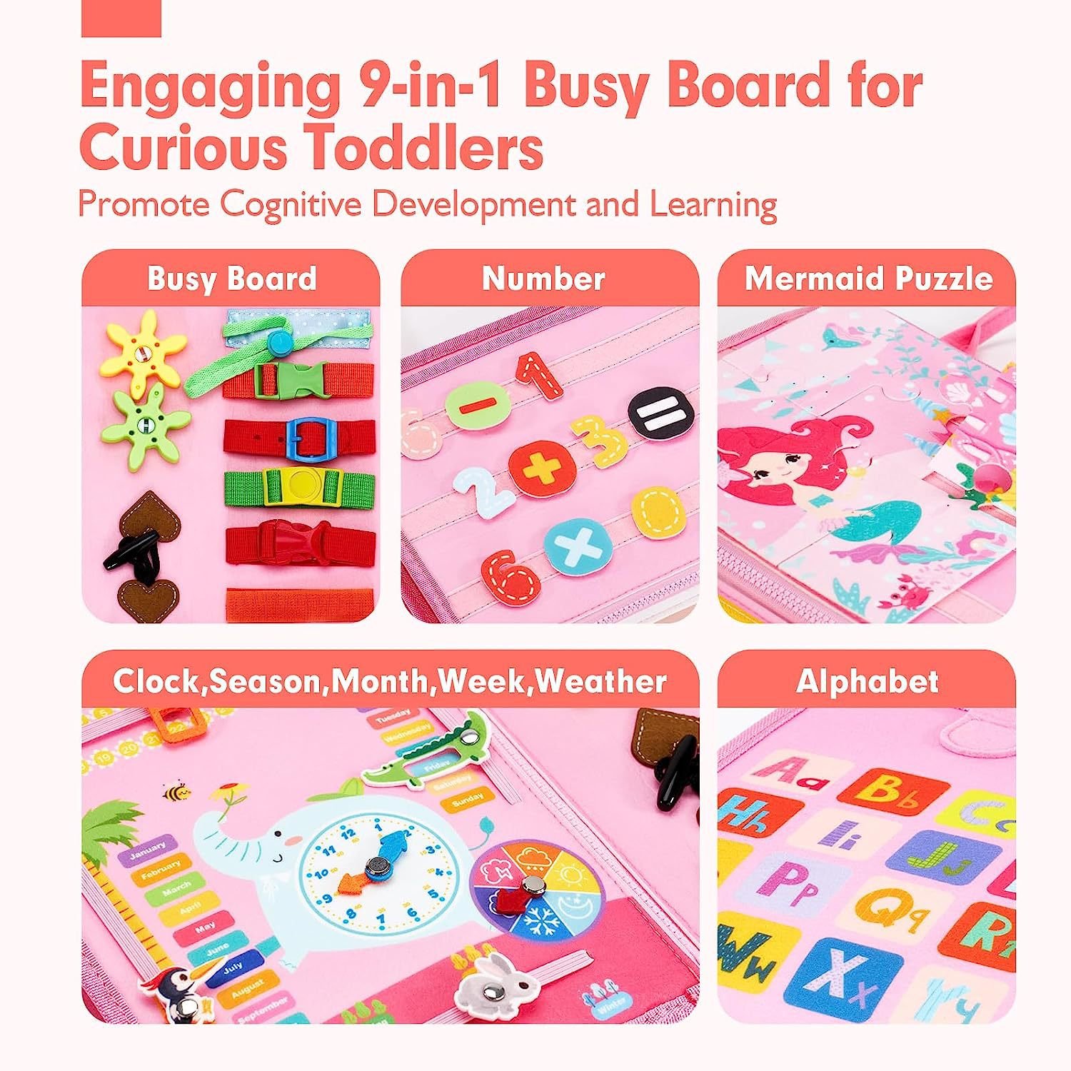 This toddler busy board includes life skills, alphabet, number, shape, color, animals, weather and DIY board hands-on ability that everything toddlers would love to play and need to learning.