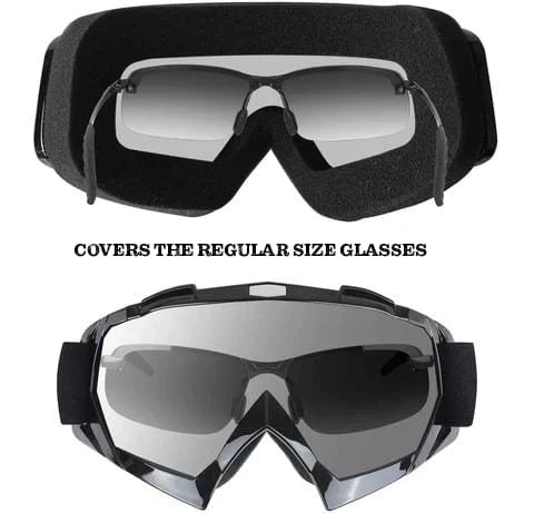 - OTG & Helmet Compatible: Our motorcycle goggles are compatible with most motorcycle helmets, like open helmets including 1/2 and 3/4 sizes. And the goggles mask can cover ordinary size glasses so that we can wear the myopia glasses while wearing this goggles.It is recommended to put myopia glasses in the motorcycle goggles before wearing.