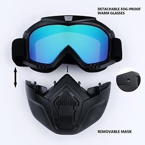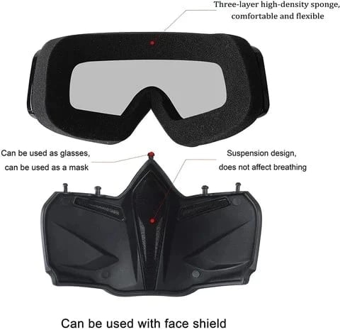 - Protective Detachable Mask: Motorcycle goggles with detachable mask not only well protect your eyes and face, but also better protect your eyes out of wind , bugs, dust, sand, and even help to prevent cold air. And the goggles can be used separately for dirt bike, atv, four wheeler.