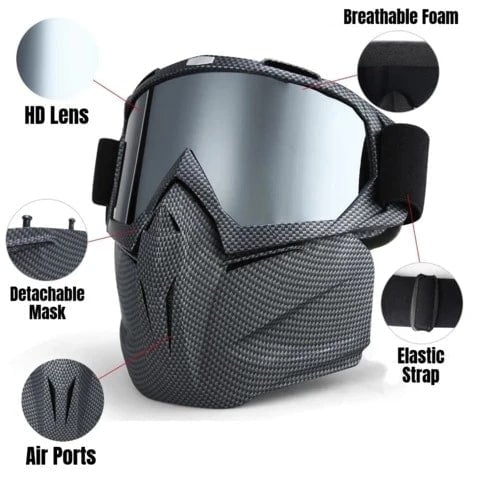 Our Mask provides maximum protection from cold winds, mud, rain, snow, fog, and UV rays. Giving you a much more enjoyable experience while doing what you love.