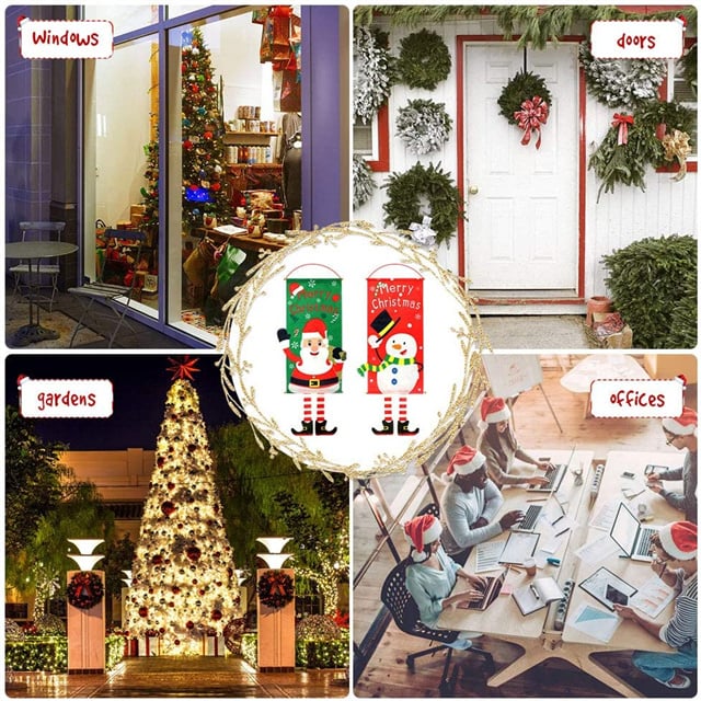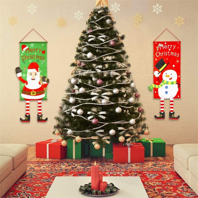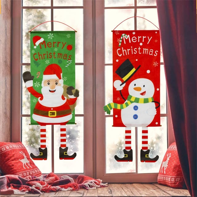 Christmas door hanging flags are made of Oxford cloth, bright colors, durable and long-lasting use. No odor, fine workmanship. Size is 115*40cm, including a rope for easy hanging and two rods.
