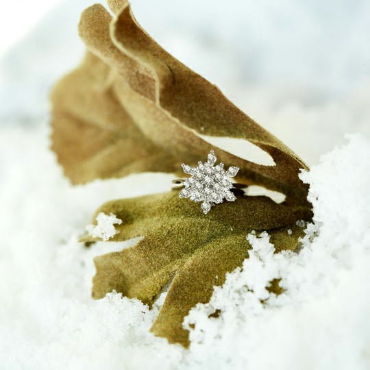 Immortalizing an authentic snowflake, this dainty ring stands for uniqueness. It is both a perfect gift and a compelling reminder of the pure, irreplaceable and everlasting bond you share.