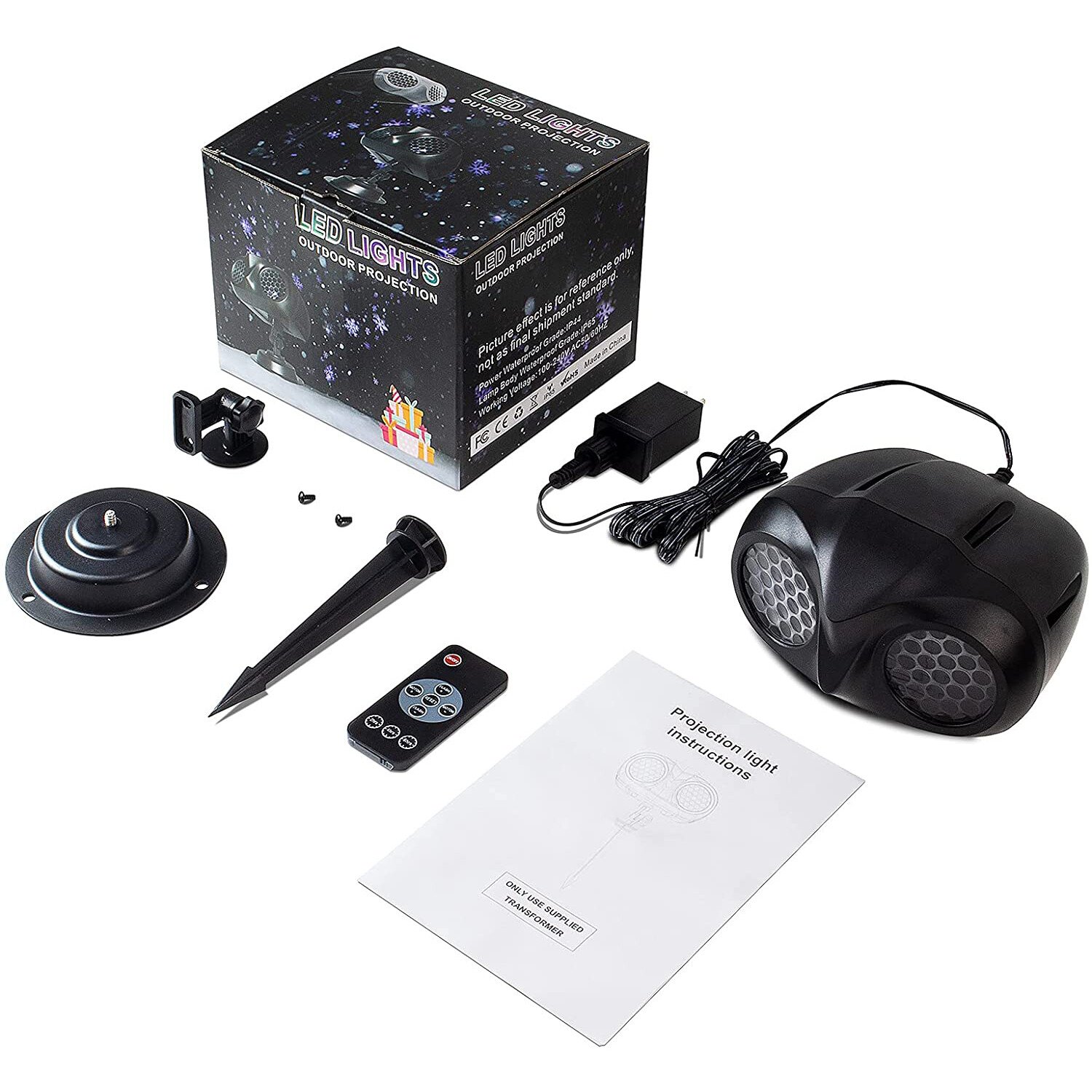 • Can be projected to any flat or non-flat (ceiling, Christmas tree, pond, grass, etc.)