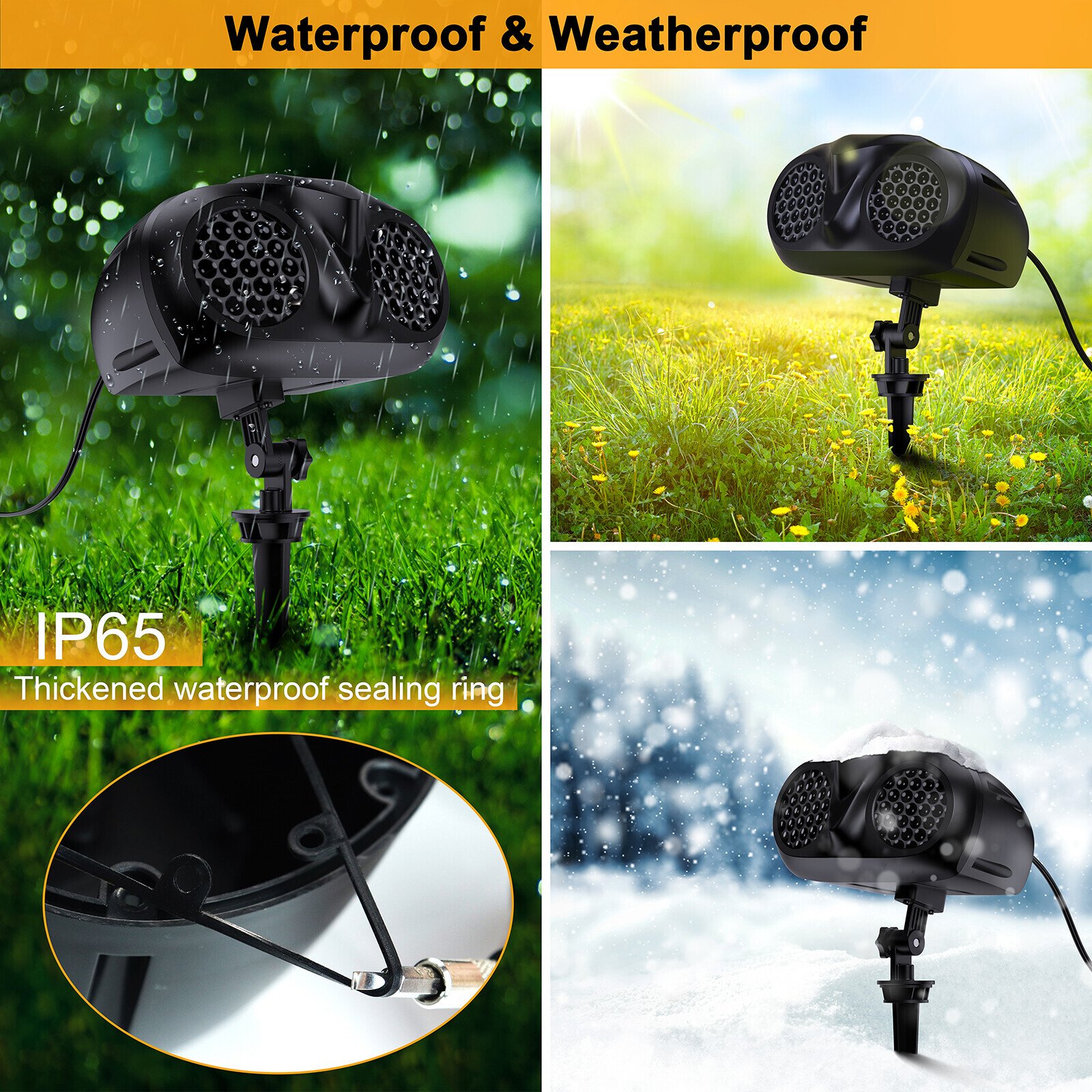 • The body is molded in one piece with thickened silicone sealing ring at the joints, waterproof up to IP65, so that withstand any heavy rain, snowstorm or high temperature.