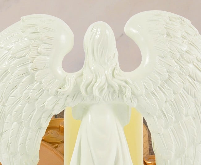 Angels pray in a silent way to heal, comfort, protect and inspire. The sculpture communicates through gestures . represent an emotion or mark a memory. Elegant candlesticks also make a great gift.Multi-functional electronic candle holder: Angel image praying with a flameless, battery-operated candle. Designed to be lit with batteries and a flickering flame, you can take it apart and put a real candle in if you wish.