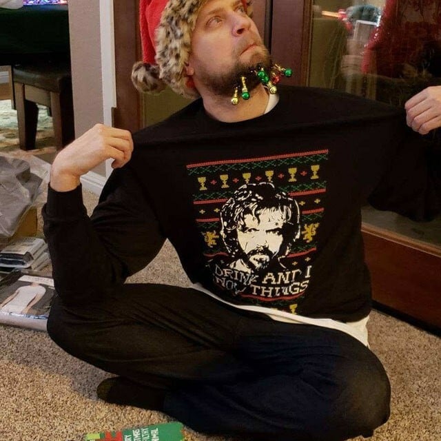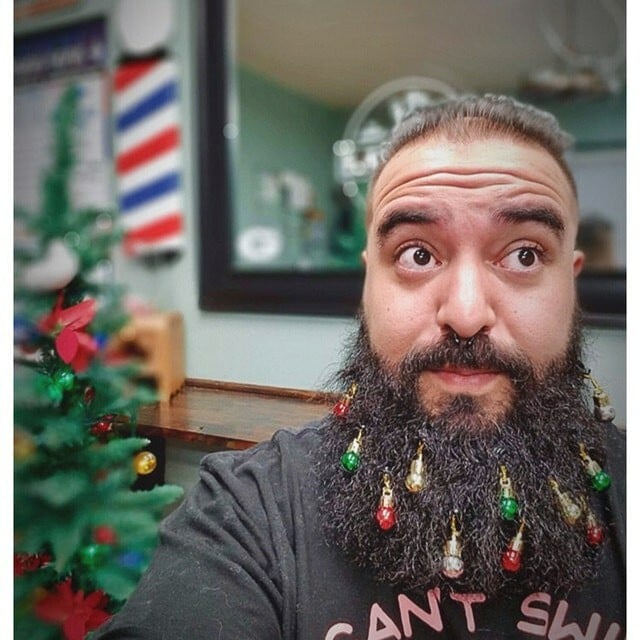 Nothing gets people talking and having fun like watching a man with beautiful and colorful beard ornaments hanging like a furry Christmas tree!